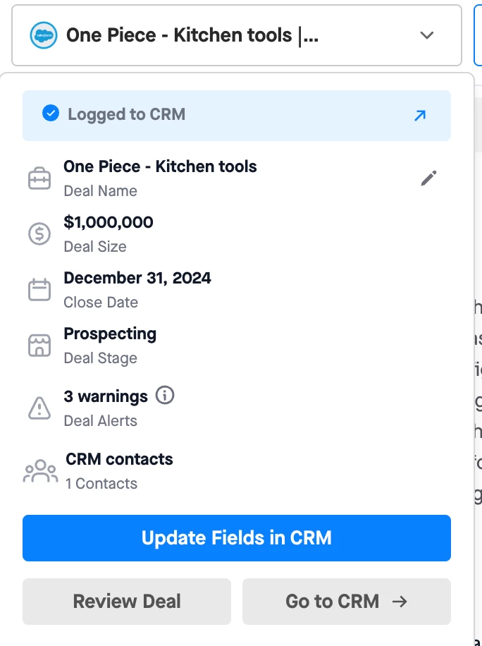 - Opportunity linked to the external attendee(s) on the call