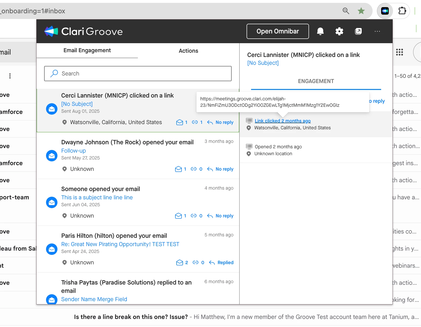 When you get that "link clicked" notification, all you have to do is hover over it. A pop-up will appear, revealing exactly which link your recipient clicked. It's a quick, easy, and super satisfying way to get the full picture of their engagement.