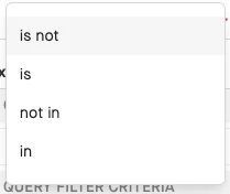 We will go with “is not” since we have a filterset option of “< 0”. If you’d like more options to configure the field, you can create more options in Field Configuration.