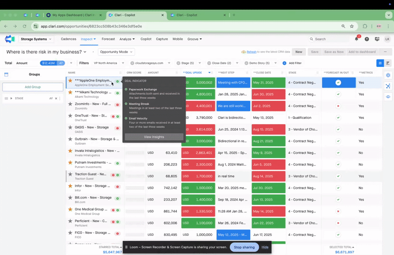 With Smart CRM Suggestions keeping your deal data current, Clari deal reviews transform from data collection exercises to strategic discussions: