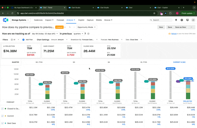 Well, before we get into the details of which is better, it’s important to understand why the projection is different for each breakdown. The reason is Clari’s AI projection is based off of historical conversion rates and these conversion rates vary by Stage and Forecast Category (you can leverage Clari’s Trend analytics module to understand this better- for example, try changing the breakdown from Stage to Forecast category and see how the conversation rates change)