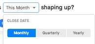 Keep in mind that although you have selected “Created Date”, “Close Date” will still be shown when selecting your desired time period. But don’t worry! You can ignore that since we’ve selected Created Date as the date field of interest.