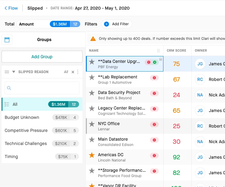 - Group by Slipped Reason - to see trends in WHY things slipped and find areas we might need more enablement on 👀