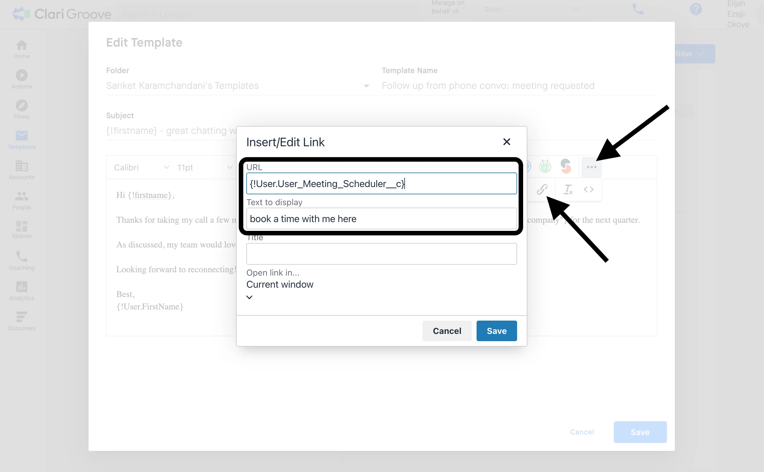 Manually Adding the Groove Scheduler Link to Flow and Actions Emails