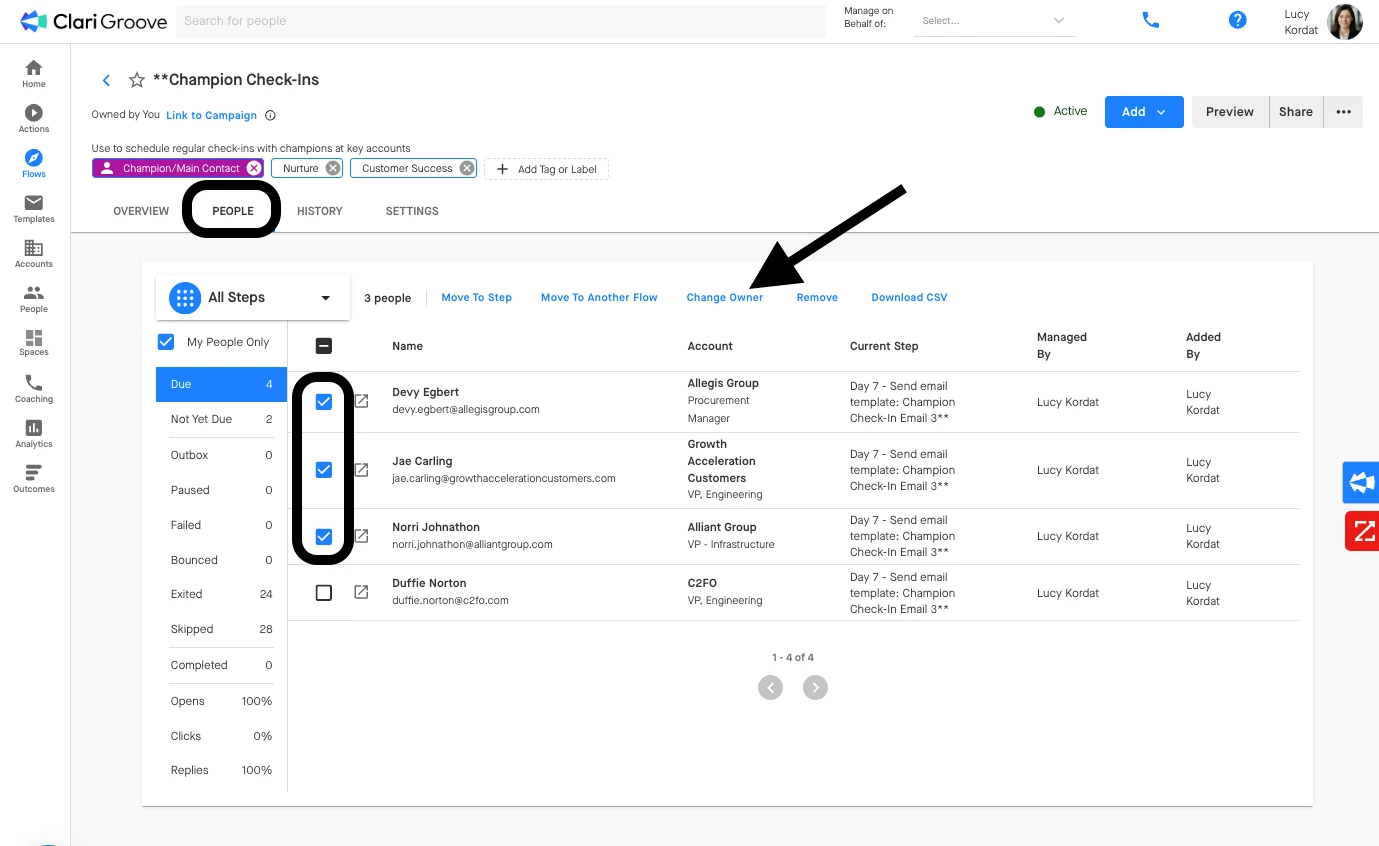 If the prospects have not completed the Flow by the time you return, your Groove Team Lead or Groove Admin can transfer them back into your ownership through the same steps. Learn more about the Flow Owner Transfer in this guide.