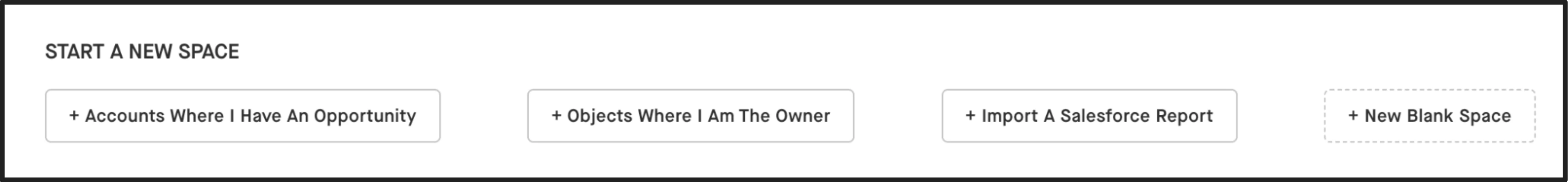 Too add more Accounts/Opportunities to your Space later, simply click the button in the top right of your Space and search for those you wish to add.