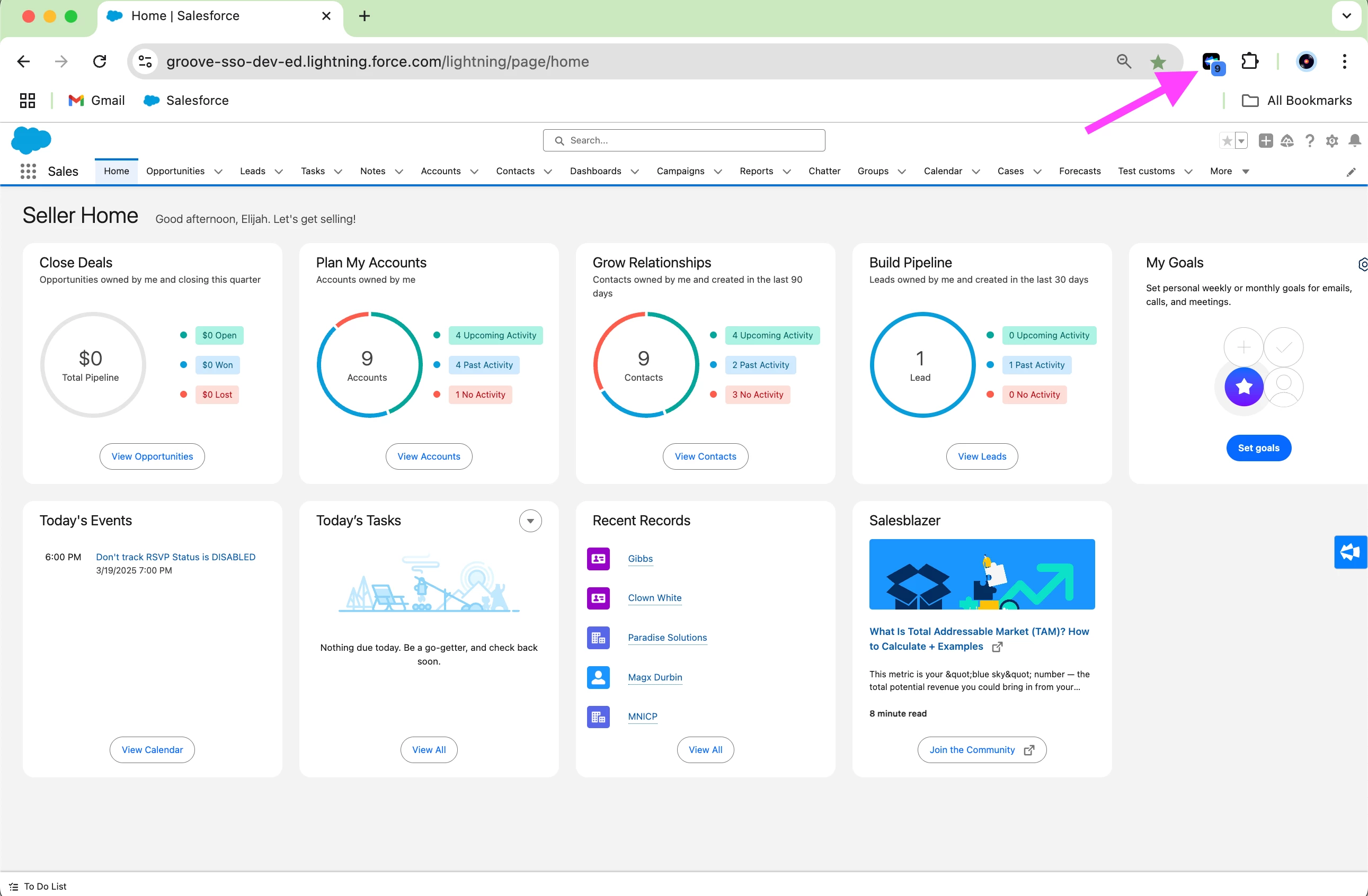 - Click your Groove extension in the top-right of your browser, then click the Settings icon.