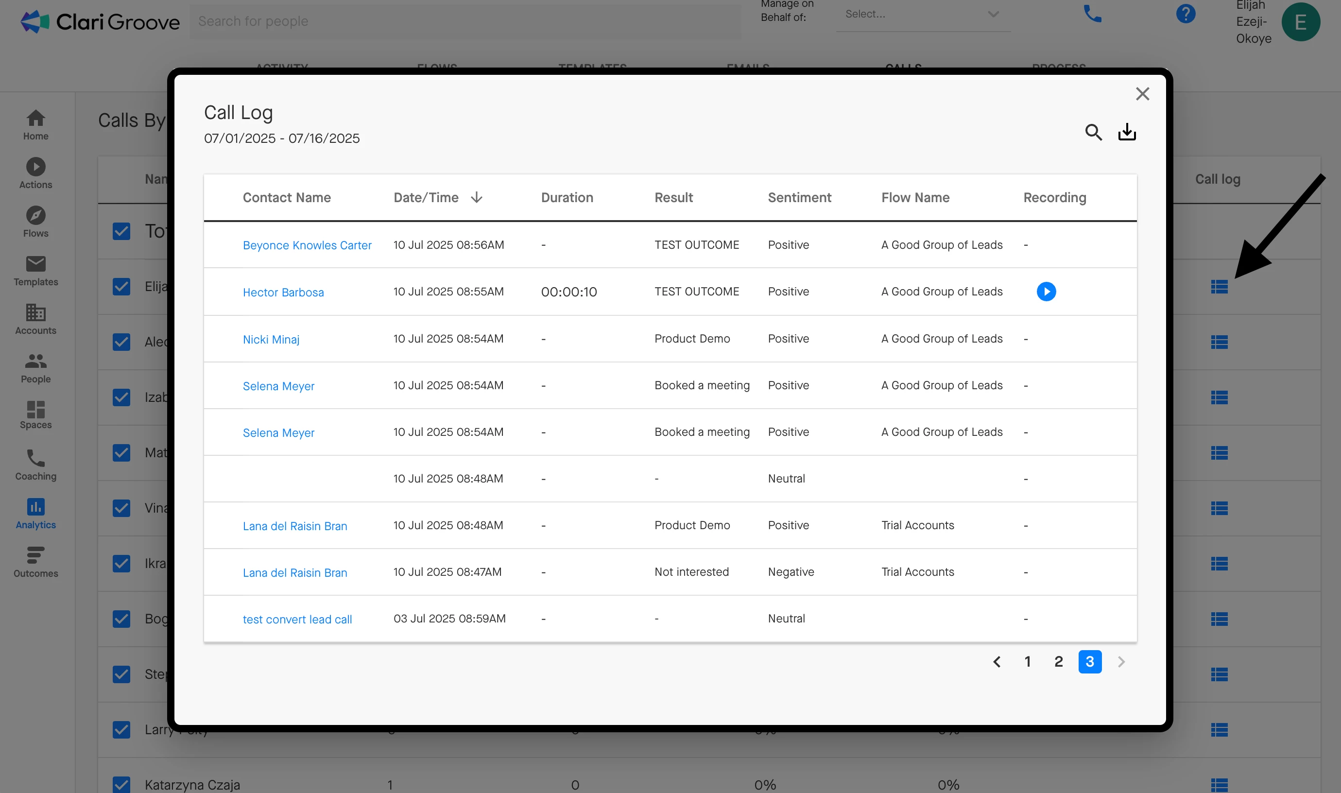 Call recordings are stored for 30 days and can be accessed from the Call Log in the ‘Calls’ tab of Groove Analytics. To listen to a recording, press the “play” button to the right of a recorded call in the call log.