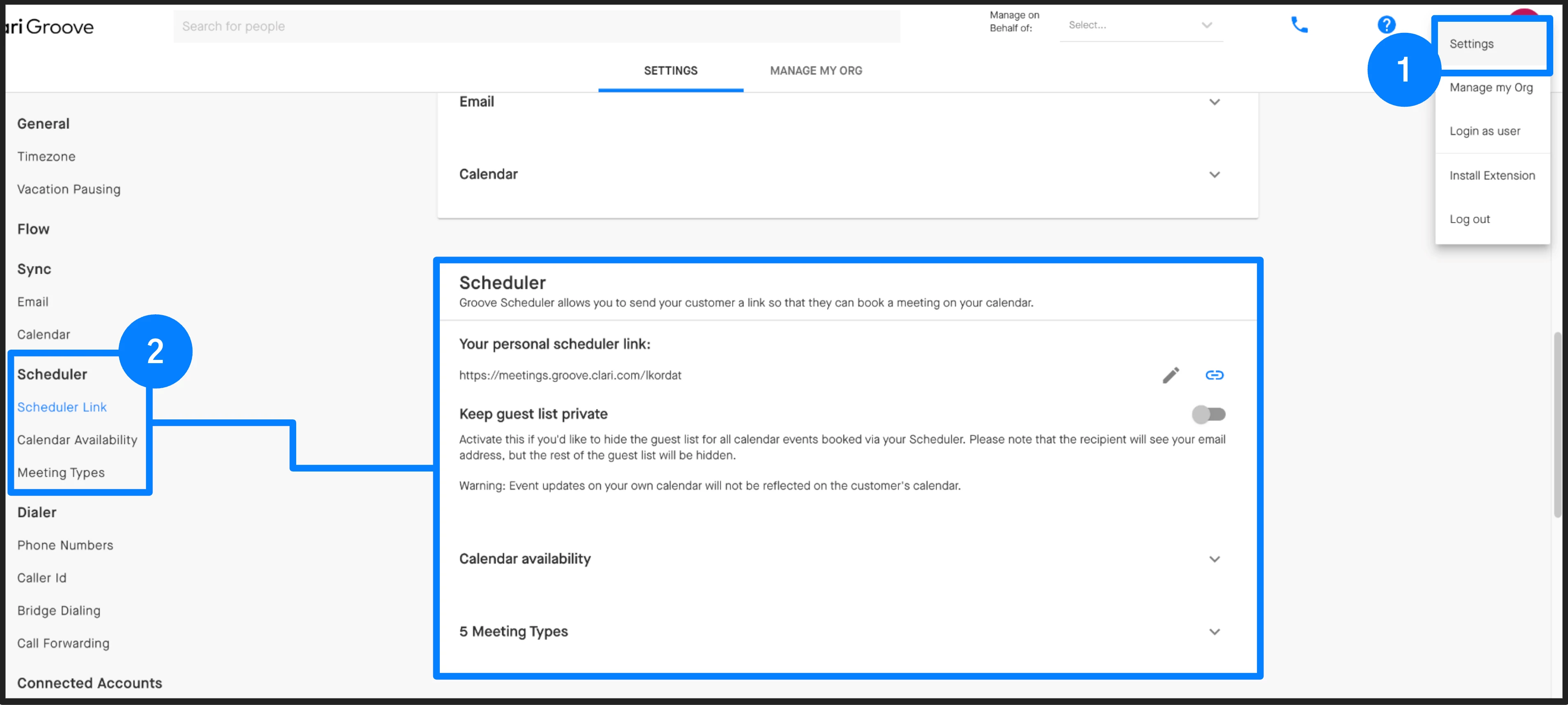 Groove syncs directly with your Outlook or Gmail account to reflect busy/free time on your calendar. If you need to set specific availability (e.g. blocking mornings) you can do that in Groove’s ‘Calendar Availability’ settings for Gmail users or Outlook’s ‘Working Hours’ settings for Outlook users.