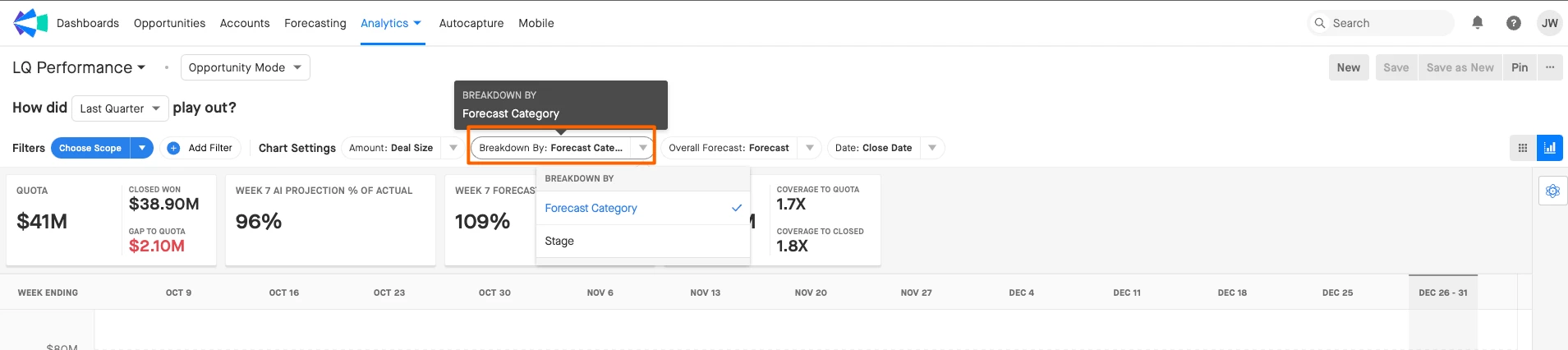 Tip: To add a field to Analytics Breakdown, it must first be added to Opportunity Filterable.