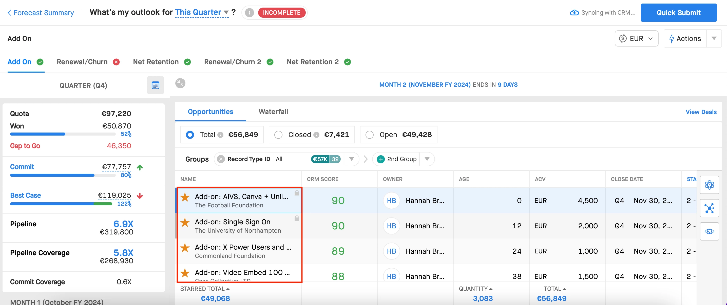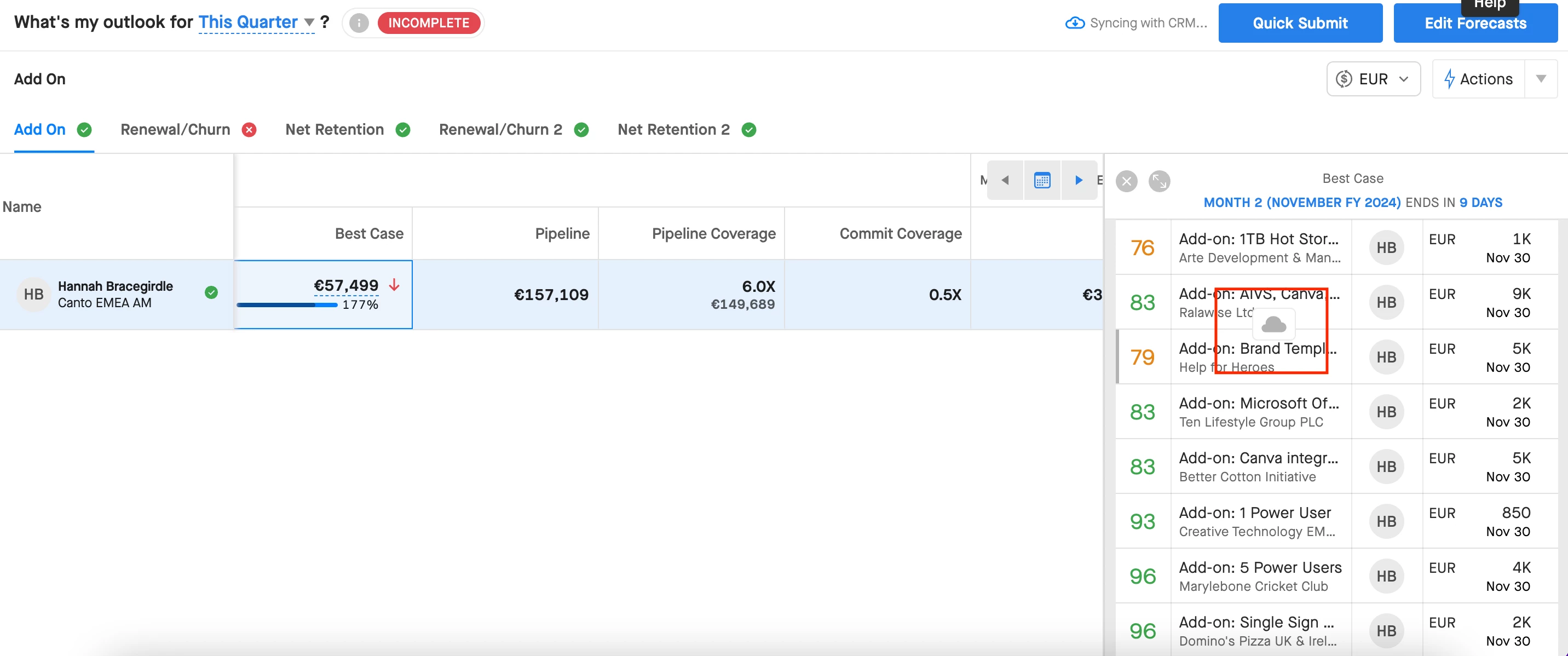 Right now you can do that when you hover over the opportunities shown in the side panel within forecast:
