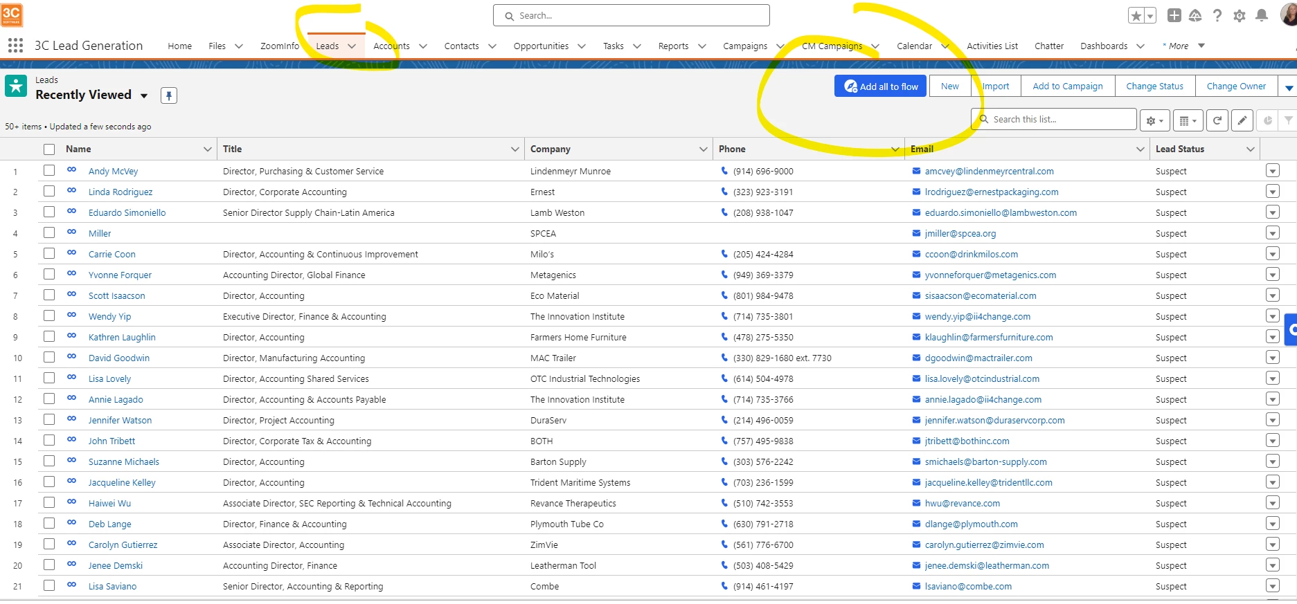 Right now, when I open a VIEW in Salesforce of a list of CONTACTS, I have no way of adding a large grouping to a FLOW. I have to repeat the view in a REPORT to add the contacts to a FLOW. The feature already exists in LEADS.
