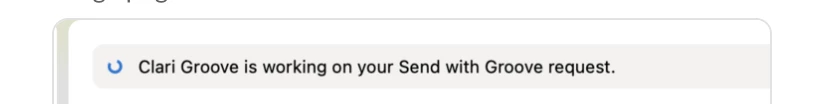 - Phase 1 – Early March: Begin using Outlook’s Send button to send emails. A subtle banner message will appear when clicking Send, confirming Clari Groove is working on sending your message, for all emails sent through Outlook. Internal emails will continue to not be logged. No other changes will occur at this stage.